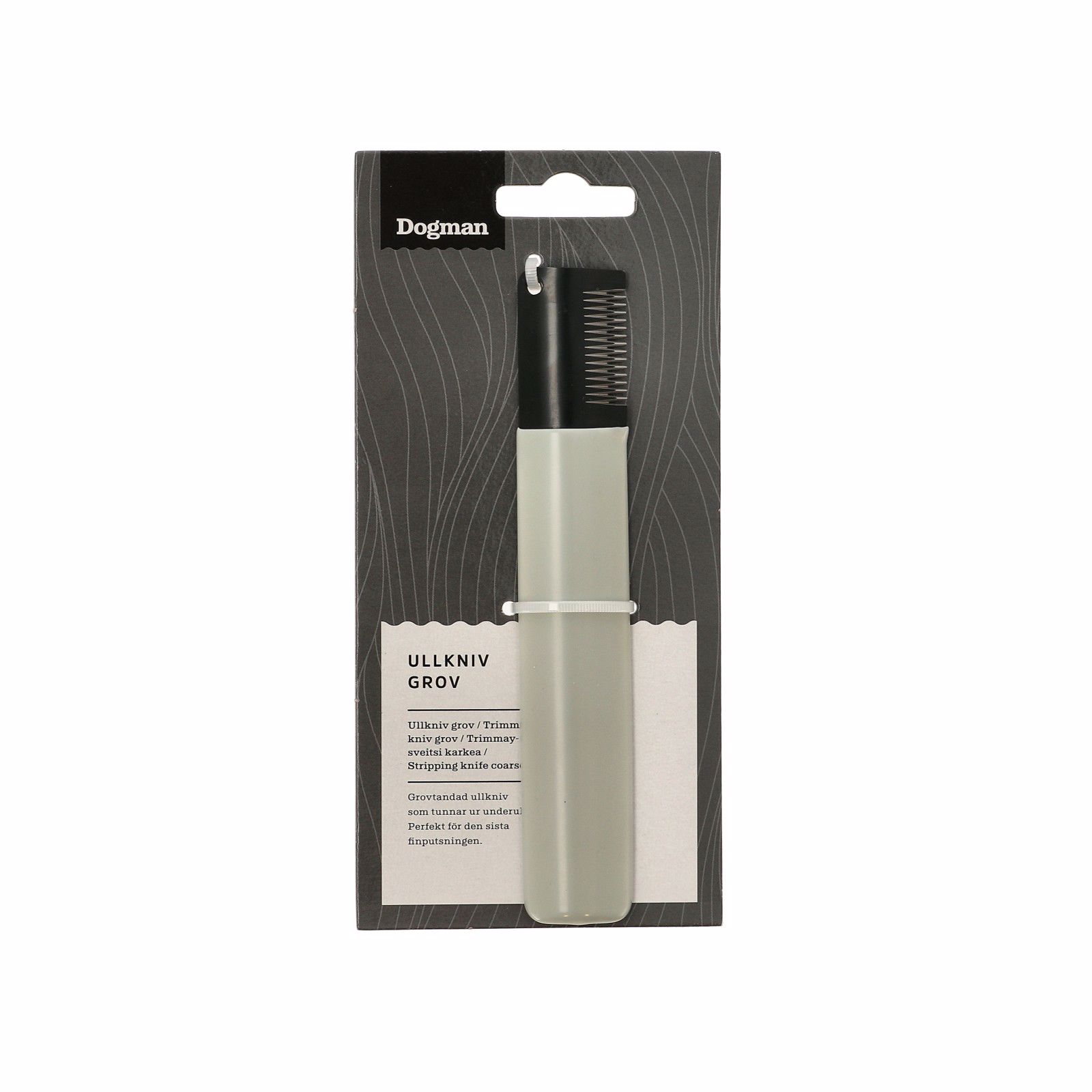 Træk uldkniven med let hånd i pelsretningen, den skal ikke skære tophårene af, kun tage underulden med sig. Når uldkniven er ny, kan den være ekstra skarp og skærer let tophårene af, så brug den ekstra varsomt i begyndelsen.